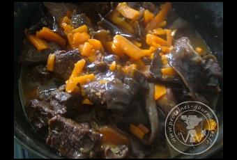 Laisser mijoter encore 20 à 30mn, la sauce devient onctueuse. Les carottes cuites. Rectifier l’assaisonnement si nécessaire
