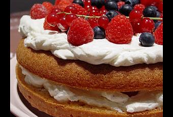 Etaler un tiers de la crème fouettée sur la surface du premier disque et parsemer déjà de quelques fruits rouges. Couvrir avec la partie supérieure de façon à reconstituer le gâteau d'origine. Couvrir de chantilly et parsemer négligemment des fruits rouges restants.