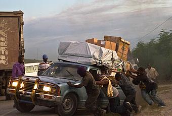 après avoir pris l’accotement pour voie de passage. La petite remontée sur l’asphalte a été fatale… Généralement la PNH est absente de ce genre de situation. Chaque fois, de bons samaritains s'improvisent gestionnaires de circulation. Je ne sais jamais si le bordel s'accentue ou s'amenuise par leur action. Ce n'est pas trop grave...