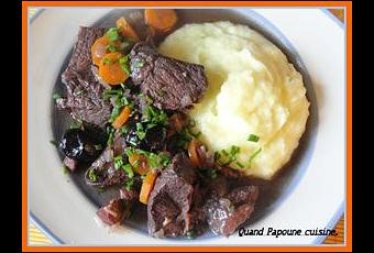 Verser la marinade sur la viande, couvrir et cuire au moins 3h à frémissements, jusqu'à ce que la viande soit tendre. Servir bien chaud, parsemé de ciboulette ciselée et accompagné de tagliatelles fraiches purée maison pour nous.