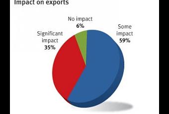 Selon cette enquête, seulement 22% des entreprises ont rapporté que leurs exportations restaient stables et 12% ont noté une progression de leurs exportations. Environ 40% des entreprises sondées s’attendent à une nouvelle baisse des exportations vers l’Europe en 2012, alors que 29% d’entre elles anticipent un volume croissant.