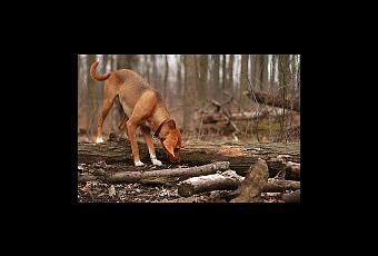 (à I.S.)Un chien s'aventurait dans le bois.