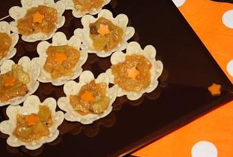 Déposer une 1/2 cuillère à café de tartinade dans les petites fleurs.