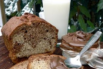 Verser la pâte dans un moule à pain de 9 po x 5 po (23 cm x 13 cm) légèrement huilé. Cuire au four préchauffé à 350°F (180°C) de 50 à 60 minutes ou jusqu’à ce qu’un cure-dents inséré au centre du pain en ressorte propre. Déposer le moule sur une grille et laisser refroidir pendant 10 minutes. Démouler le pain sur la grille et laisser refroidir complètement. Découper en tranches, bien emballer et conserver jusqu'à 1 semaine au réfrigérateur ou 2 mois au congélateur. Servir avec la tartinade de choco-noisettes si désiré.