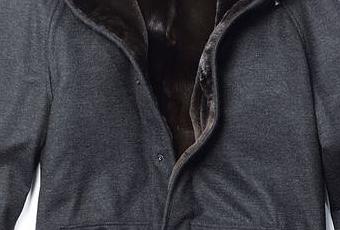 - le blouson d’aviateur habillé d’un lainage de cachemire et de doublure en vison chocolat réversible.