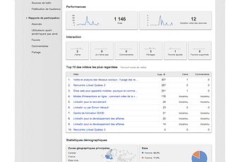 YouTube vous offre évidemment les statistiques usuelles comme le nombre de vues et les sources du trafic. Cependant, vous trouverez aussi des données sur la fidélisation de l’audience, le nombre de personnes qui ont aimé, ajouter en favoris et partagé vos vidéos. Google a d’ailleurs mis en ligne un guide d’utilisation sur les nouvelles fonctionnalités de l’outil statistiques.