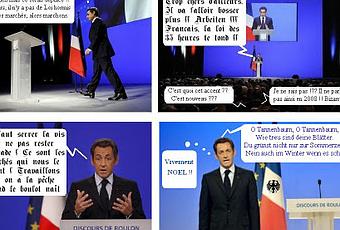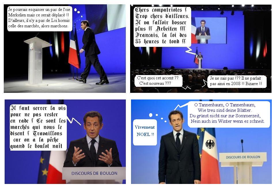 Hé bien on a relevé la présence du mot « crise » en 45 occasions. Donc un leitmotiv que le régime budgétaire light motive. On a remarqué aussi la présence d’un « NOUS » quelque peu « socio-centrique » si je peux m’exprimer ainsi. Nicolas pense que c’est l’Europe qui doit fédérer les énergies. Mais pas l’Europe fédérale (qui fait des râles), non, une Europe des Nations solidaires.