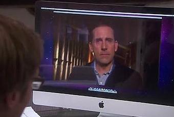 alors qu'il croit que Steve n'est plus en ligne. La scène joue sur un truc hyper classique mais efficace. On se moquant de lui même, de ses propres productions Ricky Gervais est drôle, très