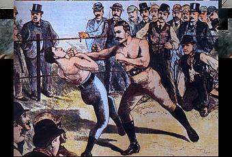 and Egyptian Pornodrome, Caligula (avec qui l'on peut faire connaissance ici), malgré ses légions, tremble... Il tombe néanmoins la toge et s'équipe, corps huilé, totalement à poil, cistes au poing. Face à lui, N. Sarkozy laisse glisser dans un chuintement le peignoir de soie rouge (siglé Grand Barnum) qui couvre son corps athlétique, ôte ses Ray-Ban et crache son chewing-gum avec l'élégance qui a fait de lui la coqueluche des sommets internationaux. Sa poitrine est barrée de deux tatouages : Cicéron à gauche, Aristote à droite. Sur le dos, un Thomas d'Aquin stylisé, portant le képi blanc et brandissant un FAMAS. Ils sont prêts. Le gong sonne. Fight!