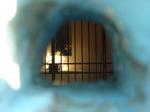 A couvert, on aperçoit alors la pâleur de murs et la tache vive de la porte, bleue comme une pervenche qui éclôt entre les troncs d'hiver.