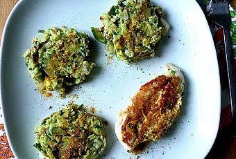 Former 4 galettes, bien tasser. Faire chauffer de l"huile dans une poêle et faire revenir les galettes à feu doux quelques minutes qu chaque face.