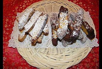 Travailler les œufs avec le sucre et le sachet de sucre vanillé (+eau de fleur d’oranger).Ajouter la farine et la levure. Verser la pâte dans un moule à tarte.(Le gâteau ne doit pas être épais, pour que les bûchettes soient croustillantes).Cuire pendant 20 à 30min.Détailler des bandes de 1,5 cm de large, puis en bâtonnets Déposer sur le moule le côté coupé.Faire dorer, sur une face puis sur la 2ème si nécessaire à 180°, 7 à 10min.