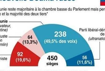 En effet, alors pourtant que Russie unie a obtenu un score flatteur (49,5 % des voix au premier tour), chacun note la déception du parti au pouvoir : en effet, malgré les différentes pressions qui seraient intolérables en Occident (bourrages d'urnes, trafics de bordereaux électoraux, pressions sur les lecteurs, attaques informatiques contre les sites indépendants, bannissement des observateurs), on n'obtient pas un score soviétique ni même un score africain. Car facialement, 49,5, c'est moins de la moitié. J'ai quand même quelques notions de mathématiques, faut pas croire.