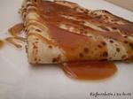 Pour la sauce caramel au beurre salé : cuire à sec 150g de sucre en poudre jusqu'à obtention d'un caramel légèrement brun. Décuire avec 10 cl de crème liquide préalablement réchauffée. Attention aux projections. Incorporer 50g de beurre salé. Dresser les crêpes et servir aussitôt.