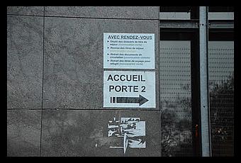 Devant ce panneau, deux files de 200m dont une uniquement pour des renseignements et deux agents d'une boîte de sécurité privé qui surveillentPas de rendez-vous chez les personnes présentes dans la file ce matin.