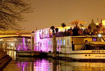 Envie de passer un réveillon original et festif? Rendez-vous sur la péniche River’s King, qui, pour l’occasion, largue les amarres au pied de la Maison de la Radio et vous embarque pour une croisière de folie! Au programme: les plus beaux monuments parisiens illuminés, de la Tour Eiffel au Trocadéro, du Musée du Louvre au parvis de Notre Dame. Un cocktail à la main, vous dégusterez des minis verrines, des bouquets de crudités croquants et des minis canapés au saumon, au caviar d’aubergine et bien d’autres surprises! Une occasion unique de (re)découvrir le Paris by Night. Dès que les deux croisières de la soirée seront terminées (une à 21h30, l’autre à 3h du matin), vous serez invités à rejoindre les deux dancefloors de la péniche. Sur des beat disco, funk ou années 80, les DJ ne vous laisseront aucun répit jusqu’au bout de la nuit.