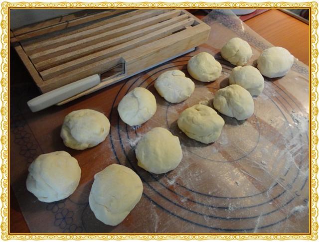 3 - Le lendemain, diviser la pâte en petites boules d'environ 80g chacune.
