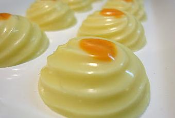 Voici arrivé le temps de confectionner des chocolats fins pour offrir en cadeaux gourmands au temps des fêtes. Et comme je veux faire des boîtes contenant plusieurs bonbons différents, je dois commencer tôt.La première variété est un bonbon chocolat "petite fleur d'oranger". Il s'agit d'une coque en forme de tourbillon en chocolat blanc Callebaut garnie de ganache à l'eau de fleur d'oranger et décorée d'un petit centre de chocolat coloré qui lui donne l'aspect d'une fleur.