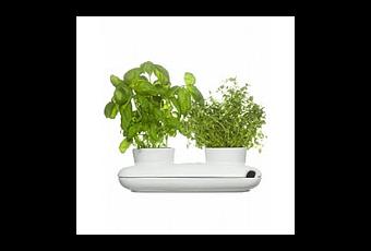 Un pot à plante aromatique au design original, puisqu'il accueille simultanément deux plantes.