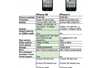 Il y a quelques autres différences entre l’iPhone 4 et le 4S mais pour moi ceux sont les principales. Je lui ai quand même conseillé d’attendre la sortie de l’iPhone 5 qui devrait sortir l’été prochain.