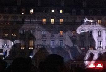 A la fin de ce premier spectacle de la fête des lumières de Lyon, je me suis dirigée vers l'Hôtel Dieu où se trouvait un envol de papiers appelé "Bourrasque".
