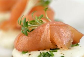 1° Coupez les 2 tranches de saumon fumé en 8 lanières égales.