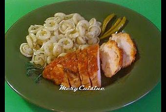 Dresser des plats individuels ou bien déposer les plats de poulet et de pâtes au centre de la table pour un service à la bonne franquette !