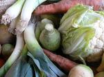 Vous aurez reconnu, en ordre d'apparition de gauche à droite: des oranges (dans le coin), des pommes, des oignons blancs, des poireaux, des rutabagas (je ne m'en lasse pas), des carottes et un chou-fleur. Ont participé également : des clémentines (Clemenvilla, acidulées à souhait) et une mangue (mon péché mignon, venue par bateau). J'ai eu une nouvelle idée pour les rutabagas, mais ce sera l'objet d'un prochain post...