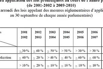 Lorsque l'on regarde à ce propos le rapport de la commission du Sénat chargée de la bonne mise en application des lois, voici un extrait de leur dernier rapport :