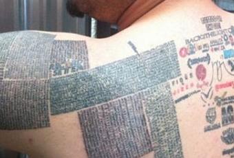 Pat Vaillacort s’est lancé un défi, se faire tatouer 100 000 adresses de sites Internet sur son corps afin d’avoir son propre record du monde ! Aujourd’hui, le canadien en compte déjà plus de 15 000 et si vous souhaitez aussi avoir l’URL de votre site/blog ou autre, tatouée sur son corps, il vous en coûtera 35$. Notez que Pat reverse ensuite une partie des fonds récoltés à des oeuvres caritatives.