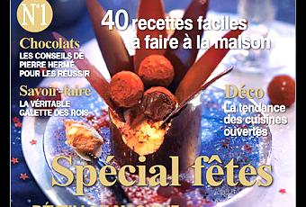 A partir de la page 25 « Côté cuisine » On entre là, dans l’aménagement de la cuisine, on y découvre des cuisines modernes, des aménagements à en faire rêver plus d’un. A partir de la page 34 nous sommes dans le côté équipement et la découverte des dernières hottes, plaques et fours de grandes marques. J’arrive page 40-41 encore de la publicité, cette fois ci pour les fours à double cuisson et 2 recettes leurs sont associées. Page 42 à 47 – Leur « Coup de cœur », une grande marque vous propose un menu inratable grâce à son nouveau four … Le Chef attaché à la marque nous détaille les recettes ! Page 48, l’univers du vin et des caves jusqu’à la page 53. Page 54-55 double page de pub. Page 56 belle photo du dessert de la page de couverture avec la promesse de de découvrir au fil des pages suivantes des conseils de Chef pour réaliser des desserts somptueux ! Page 57 sommaire du « Fait maison ». Pages 58-59 Spécial Noël, on découvre jusqu’à la page 81, 10 cadeaux de rêve pour cuisiner et les recettes qui leurs sont associées. Page 82 à 89 menu de réveillon par Le Chef Philippe Gobet (enfin !). Page 90, publicité pour l’Ecole Lenôtre. Page 91 à 93, publicité pour la pâtisserie décorative…Page 94 à 97 zoom sur le chocolat et Pierre Hermé, il nous dévoile quelques recettes. Page 98 découverte du vrai coulant au chocolat. Page 99 nouvelle publicité pour un four et une recette. Page 100 à 101, faire ses chocolats maison avec du matériel de pro en association avec un site internet. Page 104-105 Zoom volailler. Page 108 à 112, direction Londres pour l’évasion. 113 abonnement, 114 publicité pour les cuisinistes qui viennent d’ouvrir dans toute la France. 115-116 page de fin avec de nouvelles publicités.