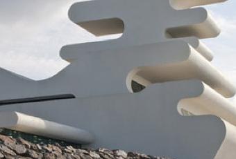 La construction étonnante que vous découvrez est un poste de douane situé à Sarpi sur la frontière côtière entre la Turquie et la Géorgie. Il est l’oeuvre de l’architecte berlinois J. Mayer H. Les courbes du bâtiment se déploient sur deux étages pour culminer avec une tour de contrôle digne d’un petit aérodrome. Le poste frontière intègre les installations douanières habituelles : un café, des salles d’attente, des salles de conférence… Le dernier pli de la tour abrite une série de terrasses avec vue sur la mer, la côte et les terres. Le style architectural rappelle beaucoup certaines constructions des années 70.