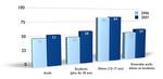 En 2007, les actifs et les étudiants ayant accès à un ordinateur sont 59%, soit +6 points par rapport à 2006. Beaucoup de contrast au sein de la population active, en fonction de la profession : 87% des cadres supérieurs disposent d’un ordinateur contre 23% des ouvriers. Chez les employés et les travailleurs indépendants, la situation est à l’équilibre.