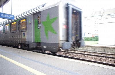 Photographie : "La gare de Bernay" par le citadin, année 2011©® / "Divers "UNES" des cahiers d'acteurs écrits par les intervenants (personnes morales) du projet" publiaient par la "CPDP ©®™ / "Couverture du dossier du maître d'œuvre d'ouvrage de la LNPN" par la société "Stratis" pour le compte de la "RFF" en septembre 2011 ™®©.