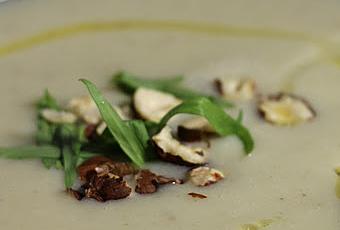 J'aime beaucoup cette soupe de topinambours (je reconnais un peu compliqué à éplucher), très douce mais aussi chic et parfumée avec l'estragon et l'huile de truffe .