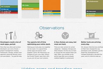 Par exemple, une étude a été réalisée pour connaître les applications les plus utilisées dans la vie professionnelle des développeurs, pouvant ainsi donner de bonnes idées aux amateurs de bons logiciels. Il en ressort que Google Analytics arrive en première position avec un pourcentage de 85%, suivi du service de stockage Dropbox, avec 75%.