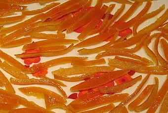 couper les épluchures en petites bandes,les mettre dans le sirop