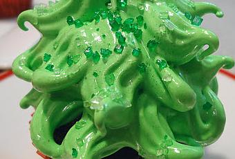 Ils sont amusants avec le petit sapin de Noël en meringue verte sur le dessus. Ces cupcakes sont au chocolat et noisettes, une association qui fait toujours plaisir.De plus, leur petit air festif rendra ces mini gâteaux irrésistibles sur une table de réveillon.
