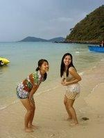 Nous avons donc retrouvé vendredi soir un groupe d'amis qui habitent dans le même quartier que moi et qui avaient réservé un van pour nous emmener jusqu'au bord de mer. Dans le groupe, Jimmy et Darrell, deux australiens, Glenn, un Neo Zelandais, Kwang, Nuch et Laa de Thailande, et le petit frenchie. Une bande bien sympathique, qui ne s'est pas quittée de tout le week-end. C'est agréable de retrouver des amis, et de se faire d'autres si rapidement.Après les quelques heures de route, embarquement pour Koh Samed, un petit quart d'heure de hors bord... Juste le temps d'apprécier la relative fraicheur de ces derniers jours. Ca correspond à une chaude et humide soirée d'aout en france. Du genre de celles où tout le monde soupire en se disant qu'il fait lour, mais croyez moi, comparé au temps habituel, c'est un vrai plaisir.