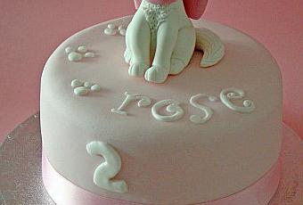 Un gâteau avec un petit chat pour l'anniversaire de Rose, jeune princesse de 2 ans.