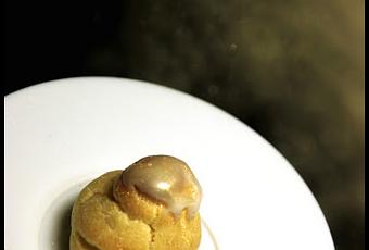Cette photo a été prise avec un canon Rebel T1i obj 18-200mm Mode AV. Je n’utilise que le mode AV mais je ne le maitrise pas encore et joue très peu avec l’ouverture (!) et là c’était du 4.5 (je ne l’ai pas changé depuis 1 mois…). Je l’ai prise sur un fond noir car je voulais faire ressortir le blanc et l’or (finalement ça fait plus ressortir le blanc que l’or). Ma principale difficulté pour toutes mes photos est la lumière (vous me direz « N’est-ce pas le cas de tous les photographes ? Surement»)… J’ai très très peu de lumière du jour (appart sur cour super super sombre). Du coup je m’installe toujours avec une petite lampe de bureau et je règle la balance des blancs sur lumière tungstène (le jour où j’ai découvert ca : ca a tout change !!!! notamment mes photos. Comme je n’ai pas de pied c’est la super galère (=c’est sur ma liste de cadeau de noël) ! J’ai fait 2 retouches sur la photo : je l’ai recadrée car j’aime le format plus carre que rectangle et je voulais que l’or et le plat fasse un peu symétrie et occupe à peu près la même surface. Et j’ai retouché la lumière car la photo était trop sombre.J’ai eu besoin d’un assistant donc Monsieur A. s’est retrouve avec de la poussière d’or de partout ! J’ai utilisé une petite passoire qu’il a agitée au-dessus du chou en essayant de ne pas enlever la lumière de la lampe (2ème difficulté) !Mon idée était de faire un « nuage d’or » pour qu’on ait l’impression que le doré ait été laissé par le passage du nuage.Voilà vous savez tout ! Je vous mets une petite photo d’éclairs pour la route ! Ou là on peut dire que le stylisme est minimaliste (ou voilà ce que ça donne quand je ne réfléchis pas au stylisme).