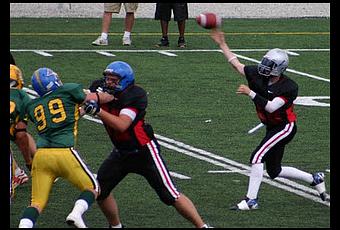 Depuis le temps que je vous achale avec le fait qu'un gros nom était sous le point de venir jouer son football ici. Hey bien, le voici ce joueur, Jeff Veinotte de l'université de Buffalo sera en Rouge et Or l'an prochain.Veinotte est un joueur de ligne offensive de 6'6'' 330 lbs qu'on qualifie de ''blue chip'', ''monster'' , un joueur ''dominant'' , une machine!!! Dans une entrevue trouvée sur le web, on dit de lui qu'il est possiblement un des meilleurs espoirs à avoir évoluer dans la région d'Ottawa.