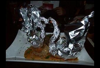 Hier soir j'ai testé un nouveau restaurant de Berlin-Prenzlauer Berg : Das Knoblauch Restaurant, littéralement Le Restaurant à l'Ail. Tout tourne donc autour de l'ail, pendant l'apéro j'ai siroté un Sex on the Beach (sans ail) en grignotant des cacahuètes à l'ail. J'ai adoré la déco de mon plat (la photo) : une bonne pièce de boeuf à l'ail avec 2 patates au four (normalement c'est une patate et des brocolis mais je suis du genre chiante) dans de l'alu en forme de cygne, avec une sauce fromage blanc - ciboulette - beaucoup d'ail. C'était très bon, la viande était tendre et délicieuse.