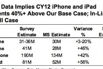 Morgan Stanley, qui est traditionnellement plutôt conservateur dans ses prévisions, estime que 190 millions de téléphones à la pomme auront été vendus en 2012.