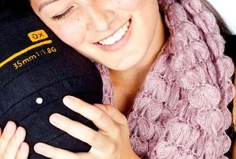 Après les tasses, voici les coussins en forme d’objectifs. Deux modèles: 50 mm f1.8 Canon ou 35mm f1.8 Nikon avec indications d’ouverture, de distance et de position manuelle AF/MF.
