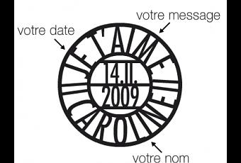 Conçu sur la base d’une médaille personnalisable, vous choisissez un message (16 caractères au maximum), un nom, une date, et le bijou s’élabore avec vos informations personnelles.