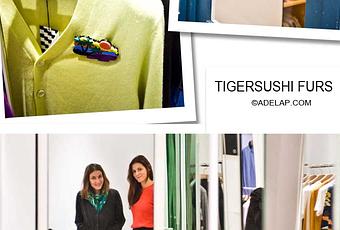 Mais ce n’est pas tout. Jamais à court d’idées, les sœurs Bouaziz entendent aussi développer leur fameux Fetish Tigersushi Shirts - lorsque un artiste est invité à décliner sa pochette de disque préférée sur... du coton - et leurs collaborations diverses (comme avec Yazbukey la saison dernière). Pour l’été prochain, elles s’apprêtent aussi à commercialiser dans leur boutique quelques petits créateurs triés sur le volet. A suivre donc : les trésors de Papier Tigre, Taise et ses somptueuses charentaises de ville, sans oublier les panoplies preppy de la marque Cuisse de Grenouille.<<