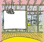 Ci-dessus le décor de la salle de réunion où Michel Chaton présente la campagne Caka-bulles® aux trois gros cochons.
