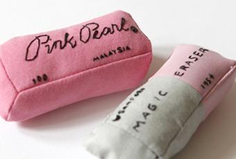 Megan Whitmarsh réalise habituellement des travaux en réponse à la culture pop, dans cette série, les outils indispensables du collégien ont étés reconstitués en broderie. Megan Whitmarsh vit et travaille à Los Angeles.