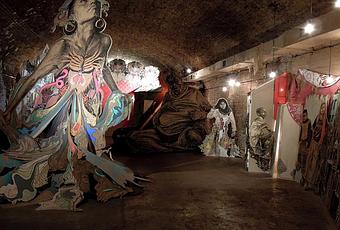 Si il y a une exposition a ne pas manquer à Londres en cette fin d'année, c'est celle que propose en ce moment la black rat gallery. L'artiste américaine swoon a littéralement investi la galerie comme elle l'avait fait lors de son exposition parisienne. Les murs sont recouverts de collages, et les oeuvres occupent l'espace nous plongeant directement dans l'univers de Swoon. La black rat gallery étant légèrement plus grande, elle a pu s'amuser encore plus! On retrouve quelques personnages croisés a Paris, son père, les petites filles et les garconnets mais d'autres protagonistes sont venus se joindre à eux.